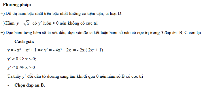 Trong các hàm số sau đây hàm số nào có cực trị