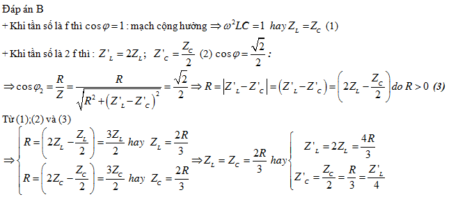 Đặt vào hai đầu đoạn mạch RLC mắc nối tiếp một điện áp xoay chiều có tần số thay đổi được.Khi tần số điện áp là f thì hệ số công suất của đoạn mạch bằng 1. Khi tần số điện áp là 2f thì hệ số công suất của đoạn mạch là