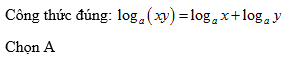 Cho a > 0, a khác 1;x, y là hai số thực dương. Tìm mệnh đề đúng?