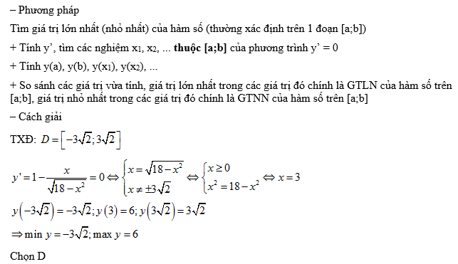 Tìm giá trị lớn nhất và giá trị nhỏ nhất của hàm số