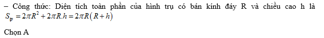 Cho hình trụ có chiều cao h, bán kính đáy là R. Diện tích toàn phần của hình trụ đó