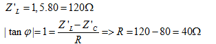Một đoạn mạch nối tiếp RLC có Zc = 80 Ω, ZL biến đổi được.Cho độ tự cảm của cuộn cảm thuần tang lên 1,5 lần so với giá trị lúc có cộng hưởng điện thì điện áp hai đầu đoạn mạch lệch pha π/4 so với cường độ dòng điện chạy trong mạch. Giá trị của R là: