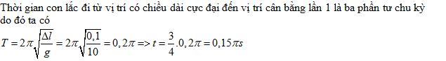 Cho g= 10m/s2. Ở vị trí cân bằng của một con lắc lò xo treo theo phương thẳng đứng, lò xo dãn 10cm. Khi con lắc dao động điều hoà, thời gian vật nặng đi từ lúc lò xo có chiều dài cực đại đến lúc vật qua vị trí cân bằng lần thứ hai là