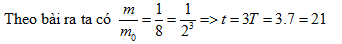 Một chất phóng xạ có chu kì bán rã T= 7 ngày. Nếu lúc đầu có 800g chất ấy thì sau bao lâu còn lại 100g?