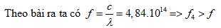 Một chất bán dẫn có giới hạn quang dẫn là 0,62μm. Trong số các chùm bức xạ đơn sắc sau đây (có tần số tương ứng là: f1 = 4,5.1014Hz; f2 = 5.1013Hz; f3 = 6,5.1013Hz; f4 = 6.1014Hz) thì chùm nào có thể gây ra hiện tượng quang điện trong khí chiếu vào chất bán dẫn kể trên?