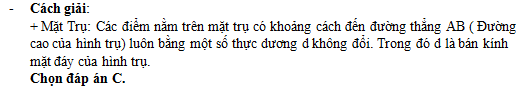 Trong không gian cho hai điểm phân biệt A, B cố định và một điểm M di động sao cho khoảng cách từ M đến đường thẳng AB luôn bằng một số thực dương d không đổi. Khi đó tập hợp tất cả các điểm M là mặt nào trong các mặt sau?