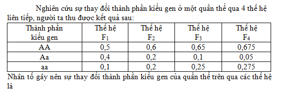 Ta nhận thấy thành phần kiểu gen trong quần thể thay đổi trong các thế hệ theo hướng tăng dần tỉ lệ kiểu gen đồng hợp và giảm dần tỉ lệ kiểu gen dị hợp trong quần thể
