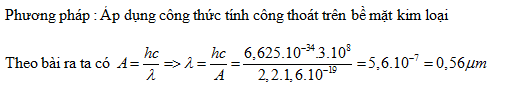 Năng lượng tối thiểu dùng để tách một electron ra khỏi bề mặt một kim loại là 2,2eV. Kim