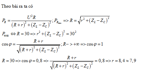 Đặt điện áp xoay chiều có giá trị hiệu dụng và tần số không đổi vào hai đầu đoạn mạch gồm biến trở, cuộn dây và tụ điện mắc nối tiếp. Hình vẽ bên là đồ thị biểu diễn sự phụ thuộc của công suất tỏa nhiệt P trên biến trở và hệ số công suất cosφ của đoạn mạch theo giá trị R của biến trở. Điện trở của cuộn dây có giá trị gần nhất với giá trị nào sau đây?
