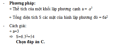 Biết rằng thể tích của một khối lập phương bằng 27. Tính tổng diện tích S các mặt của