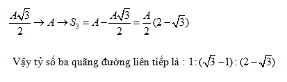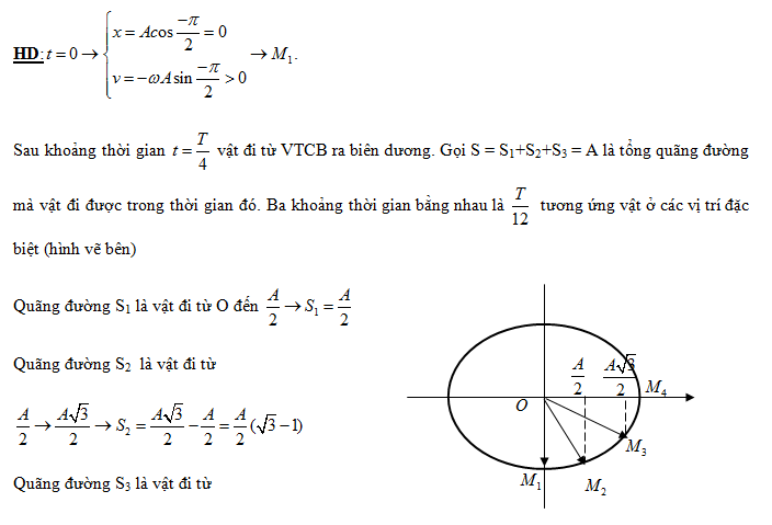 Một chất điểm dao động điều hòa với phương trình x = Acos . Tính từ thời điểm t = 0 đến thời điểm T/4, tỉ số giữa ba quãng đường liên tiếp mà chất điểm đi được trong cùng một khoảng thời gian là