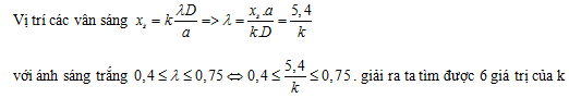 Trong hiện tượng giao thoa ánh sáng, cho a = 0,2 mm ,D =1 m .Chiếu ánh sáng trắng có bước sóng nằm