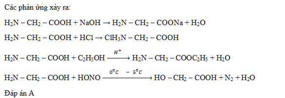 Hợp chất H2N – CH2 – COOH phản ứng được với : (1) NaOH; (2) HCl; (3) C2H5OH; (4) HNO2