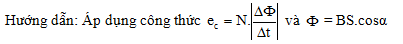 Một khung dây phẳng, diện tích 20 (cm2), gồm 10 vòng dây đặt trong từ trường đều. Vectơ cảm