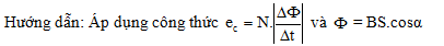 Một khung dây phẳng, diện tích 25 (cm2) gồm 10 vòng dây, khung dây được đặt trong từ trường