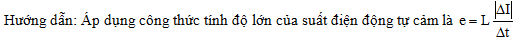 Dòng điện qua một ống dây giảm đều theo thời gian từ I1 = 1,2 (A) đến I2 = 0,4 (A) trong thời gian 0,2 (s). Ống dây có hệ số tự cảm L = 0,4 (H). Suất điện động tự cảm trong ống dây là: