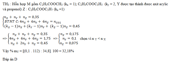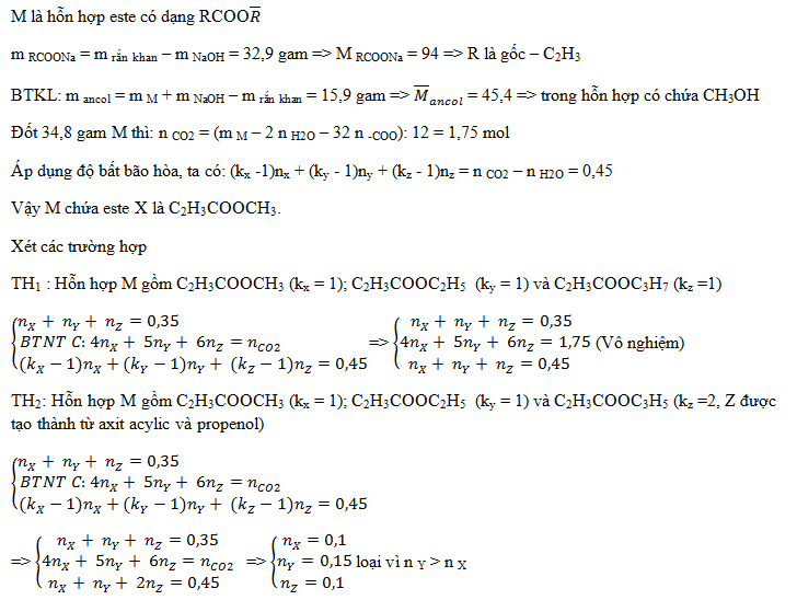 Hỗn hợp M gồm 3 este đơnc chức X, Y, Z (MX< MY< MZ và số mol của Y bé hơn số mol của X)