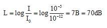 Cường độ âm tại một điểm trong môi trường truyền âm là 10-5W/m2. Biết cường độ âm