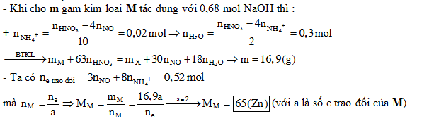 Hòa tan hết m gam kim loại M cần dùng 136 gam dung dịch HNO3 31,5%. Sau khi kết thúc phản ứng thu