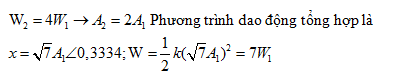 thì cơ năng của nó là W1, khi dao động điều hòa với phương trình là W2 = 4.W1. Nếu chất điểm thực hiện dao động là tổng hợp của hai dao động trên thì cơ năng của nó là