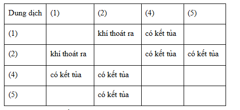 Các dung dịch riêng biệt: Na2CO3, BaCl2, MgCl2, H2SO4, NaOH được đánh số ngẫu nhiên (1), (2), (3), (4), (5). Tiến hành các thí nghiệm, kết quả được ghi lại trong bảng sau: