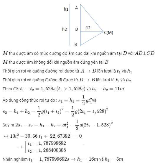Từ điểm A bắt đầu thả rơi tự do một nguồn phát âm có công suất không đổi. Khi chạm