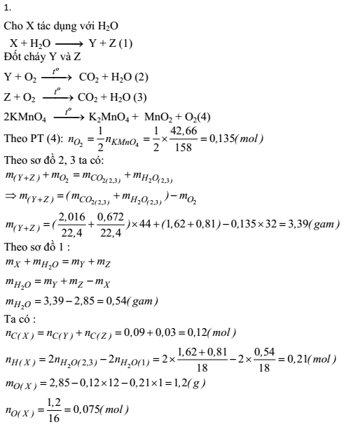 Biết X là hợp chất hữu cơ chứa (C, H, O) có công thức phân tử trùng với công thức đơn giản nhất. Cho 2,85 gam X tác dụng hết với H2O (có xúc tác H2SO4, t0), phản ứng tạo ra 2 hợp chất hữu cơ Y và Z.