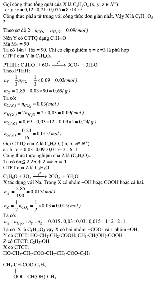 2. Nếu biết thêm X tác dụng với Na giải phóng H2 và MY = 90 g/mol. Xác định công thức cấu tạo có thể có của X, Y.
