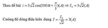Một dòng điện xoay chiều có biểu thức i = 3√2cos(100πt+π/3) (A). Giá trị hiệu dụng của
