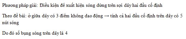 Trên một sợi dây căng ngang hai đầu dây cố định. Kích thích dây dao động với tần số ổn định thì trên dây có sóng dừng, khi đó ở giữa dây có 3 điểm không dao động. Số điểm bụng trên dây bằng