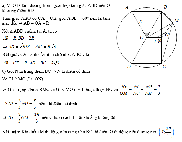 b.Trên cung nhỏ BC lấy M ,G là trọng tâm tam giác MBC ,Khi m chuyển động trên cung nhỏ BC thì G chuyển động trên đường nào ?