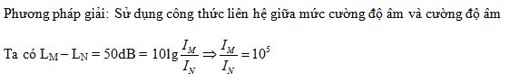 Hai âm có mức cường độ âm chênh lệch nhau 50dB. Tỉ số cường độ âm của chúng bằng