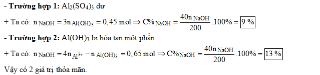 Cho 200 ml dung dịch Al2(SO4)3 0,5M tác dụng với 200 gam dung dịch NaOH thu được 11,7 gam kết tủa