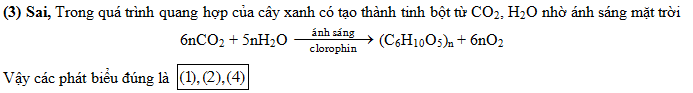 (3) Tinh bột và xenlulozơ đều được tạo thành trong cây xanh nhờ quá trình quang hợp.