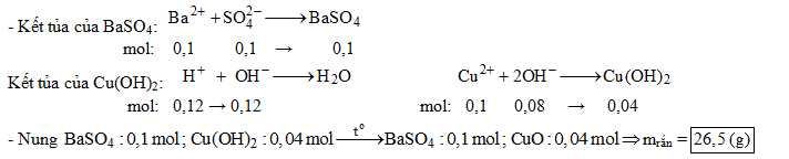 Cho 0,10 mol Ba vào dung dịch chứa 0,10 mol CuSO4 và 0,12 mol HCl. Sau khi các phản ứng xảy ra hoàn