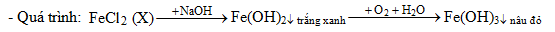 Cho dung dịch NaOH vào dung dịch muối clorua X, lúc đầu thấy xuất hiện kết tủa màu trắng hơi xanh, sau đó chuyển dần sang màu nâu đỏ. Công thức của X là