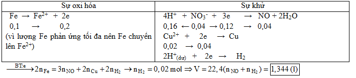 Dung dịch X gồm 0,02 mol Cu(NO3)2 và x mol HCl. Khối lượng Fe tối đa phản ứng được với dung