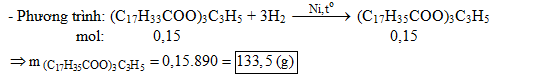 Hiđro hóa hết 132,6 gam triolein (với xúc tác Ni, t°) sinh ra m gam chất béo rắn. Giá trị của m