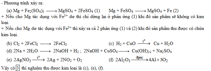 Sau khi kết thúc các phản ứng, số thí nghiện thu được kim loại là