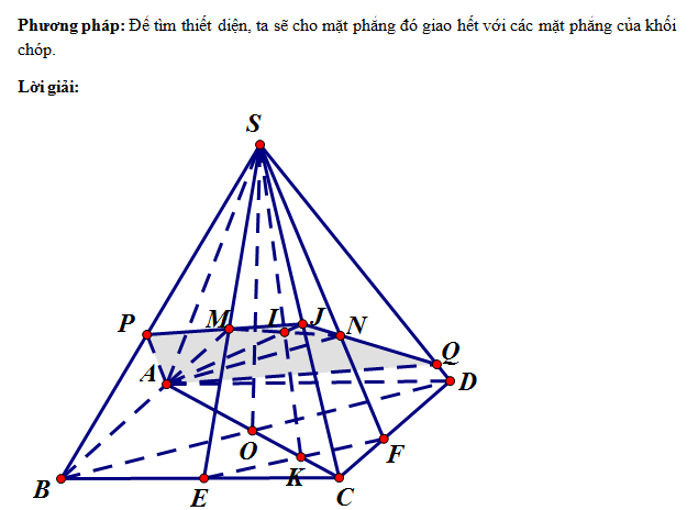 Cho hình chóp S.ABCD. Lấy một điểm M thuộc miền trong tam giác SBC. Lấy một điểm N thuộc miền trong tam giác SCD. Thiết diện của hình chóp S.ABCD với (AMN) là: