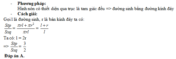 Nếu thiết diện qua trục của một hình nón là tam giác đều thì tỉ lệ giữa diện tích toàn