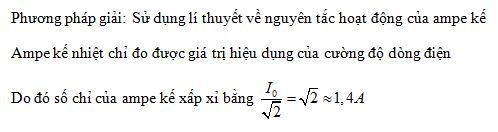 Cường độ dòng điện trong mạch không phân nhánh có dạng i=2cos100π t(A). Nếu dùng ampe kế nhiệt để đo cường độ dòng điện của mạch trên thì số chỉ của ampe xấp xỉ: