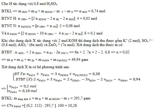 Cho m gam hỗn hợp H gồm Al (6x mol); Zn (7x mol), Fe3O4, Fe(NO3)2 tác dụng hết với 250 gam dung dịch