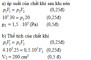 b) Một chất khí lí tưởng ở trạng thái có áp suất 4.105 Pa, thể tích khí là 25 cm3. Nếu giảm áp suất của chất khí xuống còn 0,5 . 105 Pa thì thể tích khí là bao nhiêu.