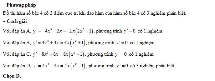 Đồ thị hàm số nào sau đây có 3 điểm cực trị?