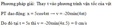 Một chất điểm dao động điều hòa trên trục Ox theo phương trình x = 5cos4πt (x tính bằng cm, t tính bằng s). Tại thời điểm t = 5 s, vận tốc của chất điểm này có giá trị bằng