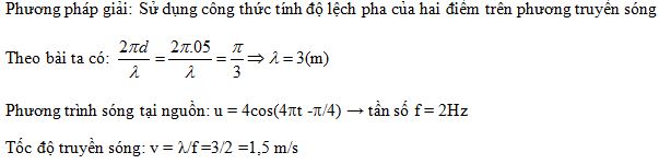 Một nguồn phát sóng cơ dao động theo phương trình u = 4cos(4πt -π/4). Biết dao động tại hai