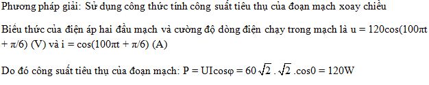 Điện áp xoay chiều giữa hai đầu một đoạn mạch được cho bởi biểu thức sau u = 120cos(100πt + π/6) (V), dòng điện qua mạch khi đo có biểu thức i = cos(100πt + π/6) (A). Công suất tiêu thụ của đoạn mạch là
