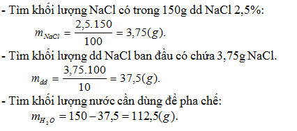 Tính khối lượng nước cần để pha chế 150g dd NaCl 2,5% từ dung dịch NaCl 10%.