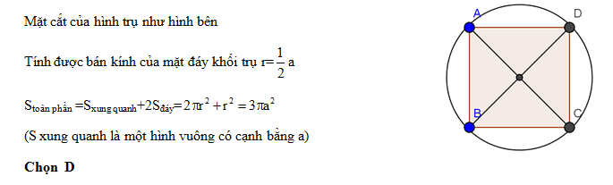 Thiết diện qua trục của một hình trụ là một hình vuông cạnh a, diện tích toàn phần của